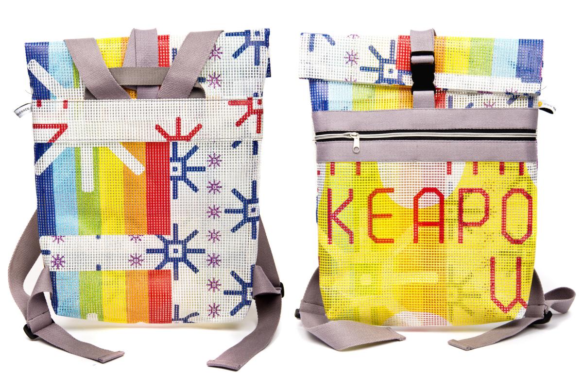 Gleich nach den feschen Shoppertaschen wurden hochwertige Rucksäcke aus dem Baunetz gefertigt: Mit Außentasche mit Zipp und großem Innenfach.