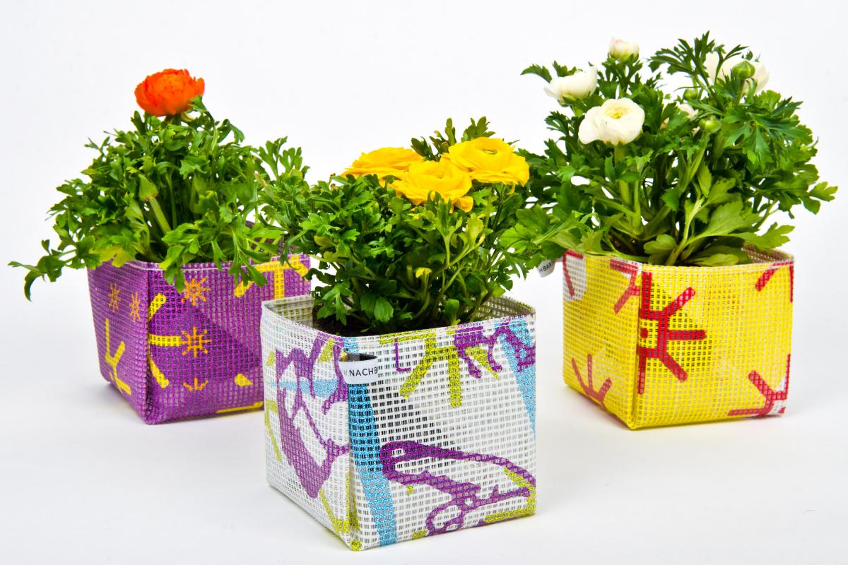 Rechtzeitig zum Frühlingsbeginn folgten Mitte März dann praktische und robuste Blumentöpfe, die innen mit einer Plastikfolie beschichtet sind und richtig Farbe auf den Balkon bringen!